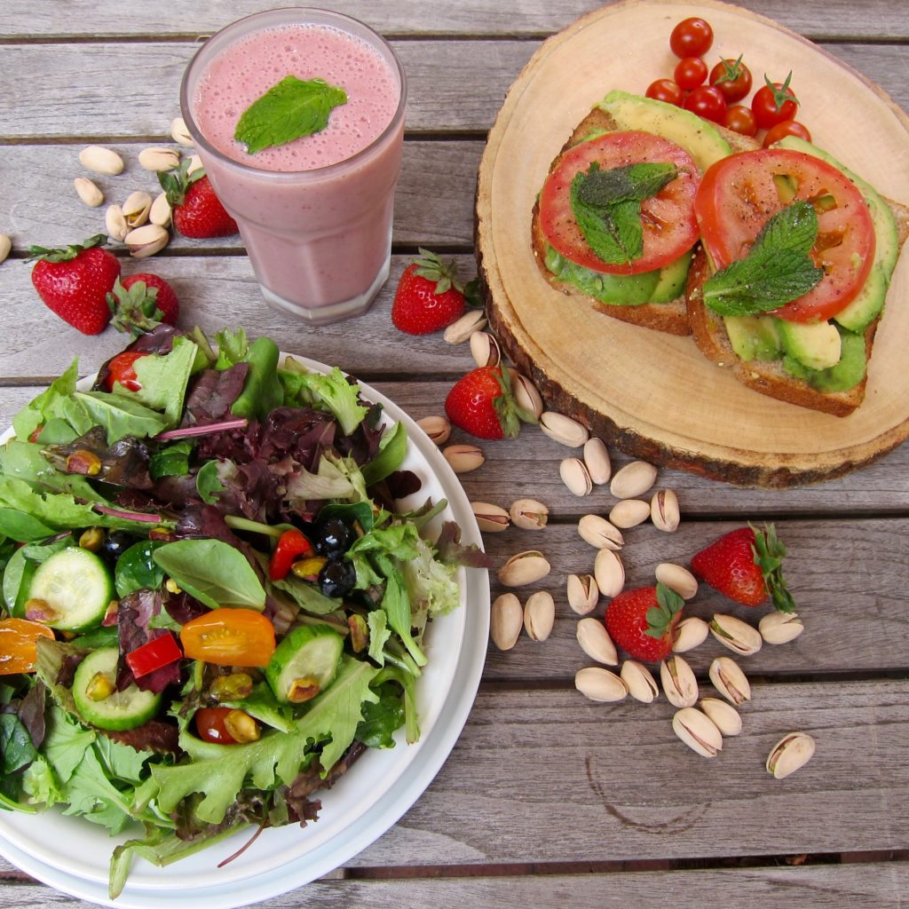 5. Take your favorite mixed green salad and chop up nuts, like Setton Farms Pistachios or their Pistachio Chewy Bites, for added crunch and protein. Greens don’t have to be eaten by themselves. The same goes for quinoa or rice. You can also sprinkle pistachios over yogurt or oatmeal for extra protein and heart healthy fat. The possibilities are endless with nuts—think smoothies, trail mixes, granola and cheese. If you are looking to cut back on calories, pistachios are the way to go! They have 49 nuts per servings and are also the lowest calorie nut.