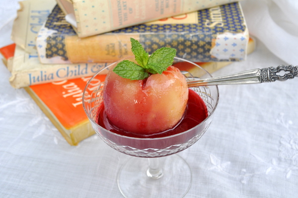 I hope you will celebrate Julia’s 100th birthday by preparing one of her recipes. This one is easy, delicious and appropriate for the season since peaches are at their peak.