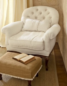 Upholstery. Transform that sagging old sofa or chair. Wrap and tuck it around existing cushions or have it made into form fitting cushions and slip covers. For a contemporary space, choose black or smoke gray.