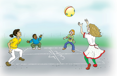 Back then we all wore our hair in pig tails, switched shoes with our best friend, rolled our socks down below our ankles, and played foursquare at recess. Those were some of the most memorable and competitive times of my life. When the bell rang for recess, my best girlfriend Julee Spangler and I united at our meeting spot on the playground, the foursquare court. This was my favorite playground game because I was good at it. It was everyone’s goal to get to square A because the person who reigned in that square served the ball and also had the right to call the rules for that game.