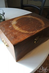 After I cleaned the surface dirt off of the box, I used a clean rag to dab the Old English onto the scratches and watermark.